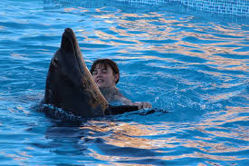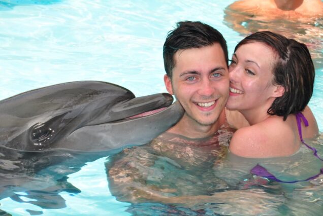 بعد العرض، تبدأ التجربة الخاصة — السباحة مع الدلافين لمدة من 15 إلى 30 دقائق.