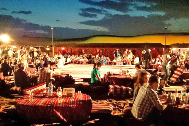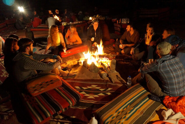 يُقدم العشاء على الطراز البدوي تحت السماء المفتوحة وسط أجواء ساحرة.