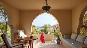 • التصميم: مباني منخفضة على منحدر تطل على البحر، مع طابع فاخر.