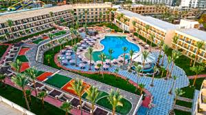• يحتوي الفندق على عدد كبير من المسابح وحديقة مائية (Aqua Park) مع منزلقات للأطفال.  “aqua park with six swimming pools” ومن بينهم مسبحان مدفّآن.