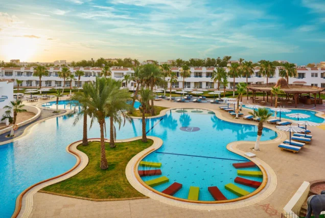 الحجم والمرافق العائلية: وجود عدة مسابح، مسبح للأطفال، زلاقات مائية — يجعل الفندق مناسباً للعائلات.