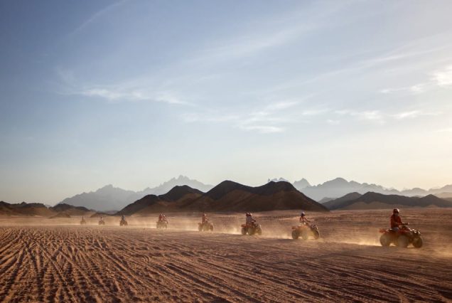 Enjoy a scrumptious breakfast at the hotel, then we transport you from your hotel to the quad station to start a marvelous Desert Safari By Quads in Hurghada. Spoil yourself with a quad bike through the rough nature of the Eastern Desert, dive into the different formations of sand dunes, experience the desert wonders, and make unforgettable memories.